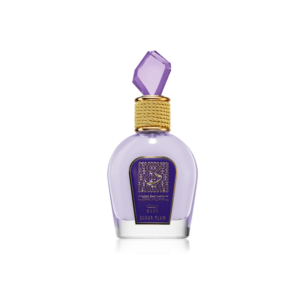 L’Eau de Parfum pour femme Lattafa Thameen Sugar Plum a été lancée en 2020. Cette douce composition incarne la puissance et la passion féminines. Le flacon lilas transparent est agrémenté de détails dorés et fermés d’un cristal.