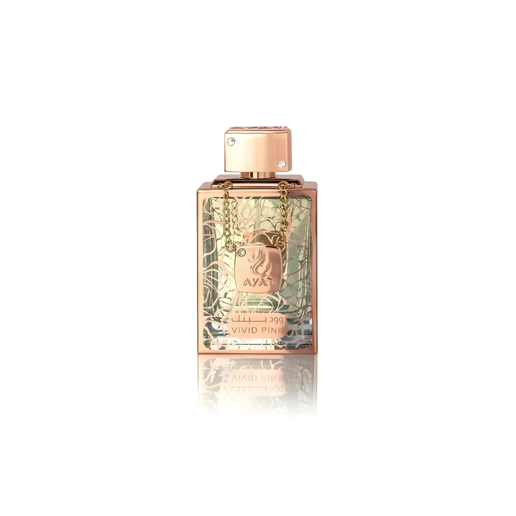 Découvrez VIVID PINK d’Ayat Perfumes, un parfum féminin incarnant le luxe de Dubaï, une célébration éclatante de la féminité et de l’élégance. Avec des notes de tête fruitées de pêche et de mandarine, un cœur floral de jasmin et de lys rouge, et un fond doux et épicé de vanille et d’épices douces. VIVID PINK est une déclaration de sophistication, idéale pour la femme moderne en quête de luxe. Une expérience olfactive qui vous démarquera.